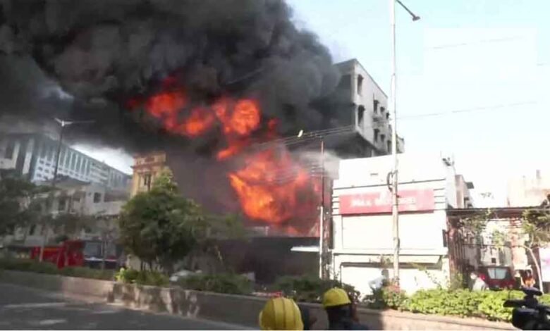 तेलंगाना के शहर हैदराबाद स्थित चारमीनार के पास दिवानदेवीडी में एक शॉपिंग कॉम्प्लेक्स में सोमवार तड़के भीषण आग लग गई, जिससे भारी संपत्ति का नुकसान हुआ।