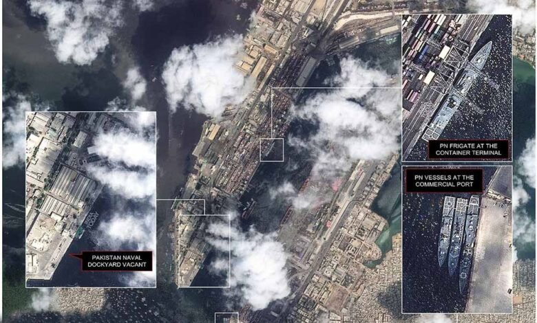 8 मई की कराची बंदरगाह की सैटेलाइट तस्वीर बताती है कि पाक नौसेना के युद्धपोत व्यावसायिक बंदरगाह और कंटेनर टर्मिनल पर खड़े थे.