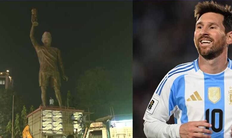 बार्सीलोना के सुपरस्टार मेस्सी शनिवार को तड़के दो बजकर 26 मिनट पर यहां पहुंच गए और अपने फुटबॉल प्रेम के लिये मशहूर पूरा शहर मेसी के खुमार में डूब गया। आठ बार बैलोन डीओर जीतने वाले मेस्सी इस बार ‘GOAT इंडिया टूर 2025’ में फुटबॉल खेलने वाले नहीं हैं। यह पूरी तरह से प्रचार और व्यावसायिक रूप से आयोजित कार्यक्रम है, जो शनिवार को कोलकाता से शुरू होगा और सोमवार को नई दिल्ली में समाप्त होगा।