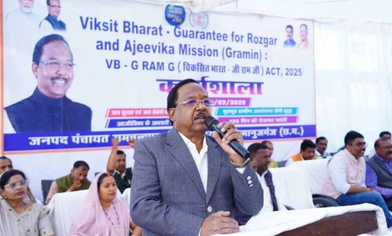 आदिम जाति विकास मंत्री रामविचार नेताम के उपस्थिति में जनपद पंचायत रामचन्द्रपुर में विकसित भारत के संकल्प को जमीनी स्तर तक पहुंचाने के उद्देश्य से विकसित भारत गारंटी फॉर रोजगार एवं आजीविका मिशन (वीबी जी राम जी) विषय पर एक दिवसीय कार्यशाला का आयोजन किया गया।