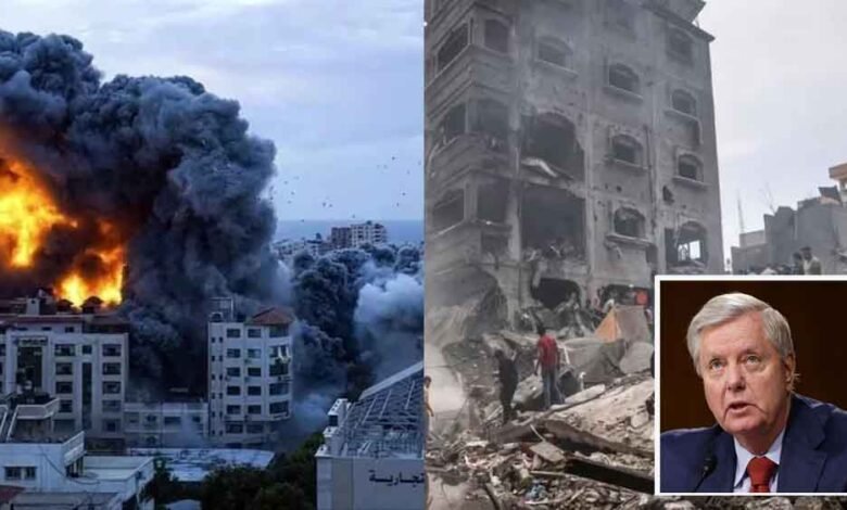 एक इंटरव्यू के दौरान रिपब्लिकन सीनेटर लिंडसे ग्राहम ने कहा, 'जब हम पर्ल हार्बर के बाद एक राष्ट्र के तौर पर तबाही का सामना कर रहे थे, जर्मनी और जापान से लड़ रहे थे, तब हमने हिरोशिमा और नगासाकी पर बम गिराकर युद्ध को खत्म करने का फैसला किया था…। वह सही फैसला था।' उन्होंने कहा, 'इजरायल को भी बम दो, जिसकी उन्हें जरूरत है। वे हार नहीं सकते।' उन्होंने कहा कि एक यहूदी राष्ट्र के तौर पर इजरायल को अस्तित्व बचाने के लिए जो भी कुछ करना पड़े, उसे करना चाहिए। उन्होंने कहा, 'हिरोशिमा और नगासाकी पर बम गिराकर खतरे को खत्म करना अमेरिका के लिए कैसे सही था? अगर हम करें, तो यह सही कैसे है? मुझे लगा वह सही होगा।' उन्होंने कहा, 'ऐसे में इजरायल आपको यहूदी राष्ट्र के तौर पर जीवित रहने के लिए जो भी कुछ करना पड़े, करें।' इस दौरान उन्होंने जनहानि के आरोप भी हमास पर लगाए। ग्राहम ने कहा, 'मुझे लगता है कि जब तक हमास अपने ही लोगों का इस्तेमाल मानव ढाल के रूप में इस्तेमाल करना बंद नहीं करता है, तब तक गाजा में आम नागरिकों की मौतों में कमी लाना असंभव है। मैंने युद्ध के इतिहास में ऐसा कभी नहीं देखा कि कोई दुश्मन आम नागरिकों की जान को खतरे में डालता है।'